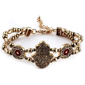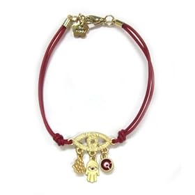 Antique Style Red Cord Golden Hamsa Hand Bracelet with Red Evil Eye: Jewelry