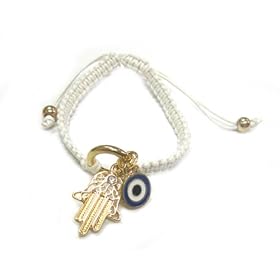 White Cord Bracelet with Circle Hoop and Hamsa/Hand of Fatima Charms - Evil Eye: Jewelry