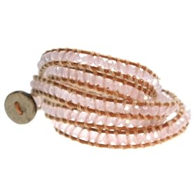 Wrap Bracelet "Blush" Pink Crystal Beads, Natural Tan Leather, Wraps 5 to 6 Times: Jewelry