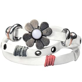 Sunflower White PU Leather Vintage Style Exotic Wrapped Fashion Snap Bracelet: Dahlia: Jewelry