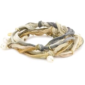 Ettika Multi Cream Vintage Ribbon Wrap Bracelet with Pearl Pendants: Jewelry