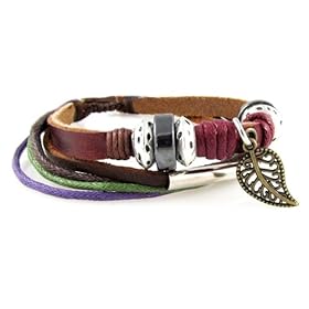 Leaf Design Leather Zen Bracelet - Adjustable, Fits 5 to 8 Inches, for Men, Women, Teens, Boys and Girls (Foil Gift Box): Jewelry