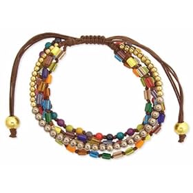 Multi Colored Bead & Cord 5 Line Wrap Bracelet: Jewelry