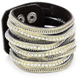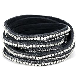 Presh Crystal Rhinestone Ball-Chain Charcoal Shimmer Leather Wrap Bracelet: Jewelry