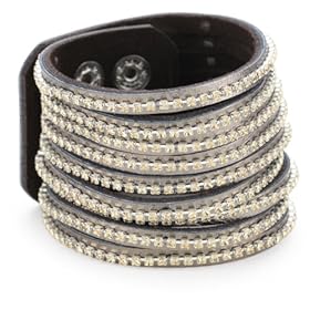 Presh Topaz Rhinestone Gunmetal Leather Wide Bracelet: Jewelry