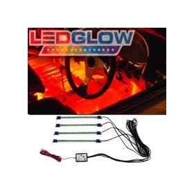 4pc. Red LED Interior Underdash Lighting Kit: Automotive. The included control box features many different patterns such as strobe, fading, and chase effects. LEDGLOWs Red Interior Kit is jam-packed with an assortment of features and four super bright LED tubes to illuminate your car's interior. Each kit includes a total of four 9inch tubes with 18 ultra bright LEDs per tube giving you a total of 72 wide angle LEDs and you can mount it to your foot well, under your seats, or even your dash. Each tube also includes 4 ft 8 inches of wire allowing maximum mounting capabilities. New to this kit is a sound activation feature with a sensitivity controller giving you even further customization options.