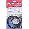 4X4 Accu-gage: Automotive. Needle holds reading until released. 2 inch dial. 3-75 PSI. Flexible hose & dual foot chuck for easy reach on all tires. Push button valve bleeds air to desired pressure. Includes protective rubber gauge guard.