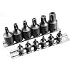 Anytime Tools 11 pc FEMALE E-TORX (Star) SOCKET Set w/RAIL E4 - E20: Home Improvement. Heat Treated. Professional HEAVY DUTY tool setThese bits will allow you to open those Torx/Star male fasteners. These are common on European made cars such as BMW. Mercedes, Volvo etc. Features:Drop Forged, Chrome Vanadium Steel. Contents:5 pc 1/4 inch Drive Sockets E4, E5, E6, E7, E8 6 pc 3/8 inch Drive Sockets E10, E12, E14, E16, E18, E20 Matched clip-on Storage Rail.