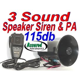 Assured Performance Police Tone 3 Sound Siren + Microphone 50w 115db Ton of Fun: Automotive. You the plug the mic. This item is one of Assured Automotive Products most popular items we carry. Sold EXCLUSIVELY by Assured Automotive Company and their Dealers. It is so much fun, you may want to check your local laws. It may be illegal for you to have this much fun!! This kit include a 50watt ABS Speaker that blares out @ 115db. Also included is a durable microphone(handle) with 3 buttons to control the different siren tones. There are 2 wail tones and an air horn tone. Don't forget the PA Microphone, after you mess with somebody, let hear you laugh!! How do you hook up?? You simply connect the RED wire to a 12v source(inline fuse recommended). You run the BLACK wire to a ground(or negative battery post). Installer may need to purchase additional wiring. The mic. feed wire is 75 inches long. cord into that.