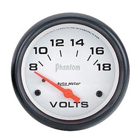 Auto Meter 5791 Phantom Short Sweep Electric Voltmeter Gauge: Automotive. Advanced 90 degree air core movements and simple three wire installation characterize these high performance instruments. Auto Meter Phantom series provide a unique look for any type of high performance vehicle. Popular in professional racing, as well as street performance applications, the Phantom series offers an impressive line of tachometers, speedometers, and gauges are available to monitor your vehicle with the very latest in technology. All Auto Meter Phantom gauges feature a bright white dial face with bold black numbering and increments for a high-contrast, high visibility display, making the Phantom series number one with racers and custom shops worldwide. Electric sending units keep hazardous fluids in the engine compartment sending collected data via an electrical signal to quick reacting, precise air core movements to give you all the information that you need and nothing that you don't.