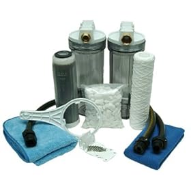 Deluxe Filter System: Automotive. We recommend attaching a Y-valve to the spigot so the filter system can remain connected when not in use. This 2-step filtration system prevents two of the most common culprits of micro-marring. You wouldn't rub sand on your paint finish; why would you wash your vehicle in sediment and hard water? In short, most of us need a two-part filtration system to ensure that the water coming out of the garden hose is truly clean. The Deluxe Filter System is a comprehensive two-step, in-line filter system that both removes sediment and softens the water. This one package is all you need to ensure you're washing your vehicle in clean, soft water. The Deluxe Filter System is a practical solution to hard water and sediment. The entire system can be attached to your hose and removed as needed. If you prefer to leave it in place, mount the two clear filters to the wall by the spigot. Remember, if you're washing your vehicle with unfiltered water, you could unknowingly be pouring hard water scale or sediment on the paint finish.