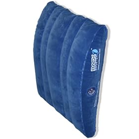 Back Booster 1001 Inflatable Lumbar Support Cushion: Health & Personal Care. And thanks to the patent-pending design, the cushion inflates in just a few breaths and then deflates to pocket size. Need a little extra lumbar support while traveling or working? Turn to the Back Booster inflatable lumbar cushion, which is ideal for airline seats, train travel, car seats, desk chars, beach chairs, and just about anywhere else. The Back Booster is made of high-quality, waterproof PVC, with an adjustable nylon strap and plastic clips for added stability. It also features no metal parts whatsoever, so you needn't worry about security delays at the airport. Accommodating of people of all sizes, the Back Booster pillow measures 13.5 by 14 by 3.1 inches (W x H x D) when fully inflated and comes with a convenient nylon travel bag.