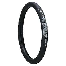 Barbed Wire Skulls Steering Wheel Cover: Automotive. It installs easily by slipping right on and fits most standard steering wheels. The Auto Expressions Steering Wheel Cover provides the latest in innovative steering wheel protection. This attractive cover improves the appearance of old or dirty steering wheels and protects hands from hot and cold extremes. In addition to adding style and fashion to your interior, the massage grip makes for a thicker, more comfortable feel.