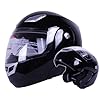 BLACK DUAL VISOR MODULAR MOTORCYCLE HELMET DOT (X-Large)