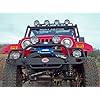 Body Armor TJ-19431 59 inch Wide Quad Hoop Front Bumper: Automotive. Body Armor bumper has multiple recovery points including two double welded shackle mounts with clevis style D-rings plus a 2 inch receiver for a center position recovery point. Body Armor 59 Inch Wide Quad Hoop Front Bumper is manufactured from 2 inch by 5 inch rectangular steel tube. Body Armor bumper is designed by enthusiasts to take the punishment from the toughest trails. Another Body Armor exclusive is the steering box skid plate protection that comes standard as well as multiple auxiliary light tabs.
