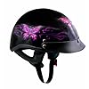 DOT Butterfly Flat Black Purple Butterfly Womens Helmet - Size : Small: Automotive. Featuring a one of a kind shell design, comfort padding and impact absorbent liner. The ultimate women's half helmet in protection and style. Fully adjustable chin strap and one a kind purple butterfly and tribal graphic against a flat black background.
