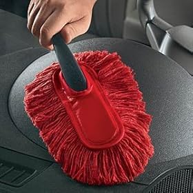 California Dash Duster: Automotive. It's perfect for removing dust and dirt from your vehicle's wheels, grille or roof rack. California Car Dusters are 100% cotton mops that clean your car, boat or house without water, and without scratching surfaces. Each cotton strand is treated with a paraffin wax that gently lifts dust, pollen and other debris and holds it in the duster. Just shake it out and it's ready to use again. The dirtier your California Car Duster looks, the better it works!California Car DusterThe original. Turned wooden handle, 26L, cleans a 15 inch swath. Storage pouch included.California Dash DusterSmaller version of the California Car Duster. Also great for home or office. Overall 14L,Tite-Spot DusterUnique swiveling and telescoping handle is great for vans, SUVs and hard-to-reach areas around the house. Removable, 4-1/4 inch x 9-1/4 inch head. Twist-lock handle telescopes from 23 inch to 44.Super Floor DusterSame swiveling and telescoping handle as the Tite-Spot Duster. Removable, supersized oval head is 17 inch x 9-1/4 inch so cleanup is fast. Twist-lock handle telescopes from 23 inch to 44. California Car Duster KitBuy all 4 California Car Dusters and save $10. Includes the California Car Duster, California Dash Duster, Super Floor Duster and the Tite Spot Duster. California Wheel DusterThis ingenious prong-style duster closes around objects to clean both sides at the same time. Around the house, you can use it to clean ceiling fans, banisters, blinds and more.