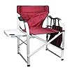 Coleman Deck Chair With Table: Sports & Outdoors. The chair is built for comfort, with padded seat, back and armrests and an ergonomic design. The Coleman Deck Chair With Table is great for the boat, the backyard, and anywhere you want a comfortable, convenient seat and table. The sturdy polished-aluminum frame supports up to 225 pounds. The side table measures 11x16.5 inch with a built-in cupholder, and is collapsible for convenience.
