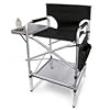 Earth Products Earth Deluxe Tall Directors Chair With Side Table and Cup Holder (Black): Sports & Outdoors. Director chairs have always been a great place to sit. We did not cut any corners when this was designed! The result is what is probably the strongest folding aluminum director's chair built anywhere. Extremely rugged strong engineering with very innovative, stylish design. Our Squared-off inch aluminum tubing gives a different, comfortable feel, and is definitely classy enough for use inside the home (at a table, counter, or bar), yet rugged enough for any outdoor use. Compact, it easily folds up for easy transport and storage. Extra elevation and extra legroom are just part of it.