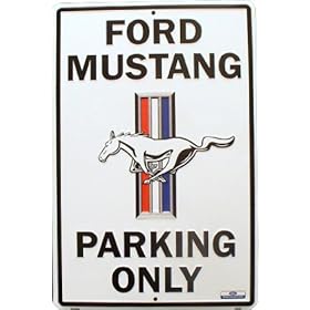 Ford Mustang Parking Only Sign: Automotive. Embossed metal parking sign with two holes for easy mounting. Ford Mustang Metal Parking Sign. Baked on finished.
