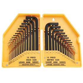 Fuller Tool 130-8030 30-Piece Combo SAE/Metric Hex Key Set: Home Improvement. Each key features a chamfered (curved) tip for ease of entry into openings. The Fuller 30-Piece SAE and Metric Hex Key Set features 30 chrome vanadium steel keys (15 standard, 15 metric) for maximum versatility in repairing and tightening a variety of different items. The anti-round-out designed keys are made from chrome vanadium steel for longevity.