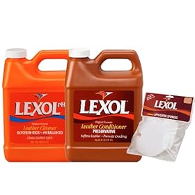 Lexol 0922 Leather Care Kit with Sponges: Automotive. This product is glycerin-rich and made with the finest tanning oils which are emulsified into microscopic droplets which bond to the leather fibers. This kit includes: Lexol 1 liter PH cleaner, Lexol 1 liter conditioner and Lexol applicator sponges. Clean normal surface dirt quickly and easily. Lexol Leather Cleaner prolongs the life of all your leather goods by keeping them clean. The package contains one round and one rectangular sponge, plus a 100-percent cotton terry cloth that will not scratch.