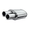 Magnaflow 10416 Satin Stainless Steel 2.5 inch Round Muffler: Automotive. It is manufactured from stainless steel and comes with a round body of 14 inches with an overall length of 20 inches. Magnaflow Satin Stainless Steel 2.5 inch Round Muffler is designed to reduce the amount of noise emitted by the exhaust system and to increase engine efficiency. This muffler offers a single inlet and outlet, measuring 2.5 inches which is positioned at the center.