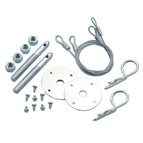 Mr. Gasket 1616 Competition Hood Pin Kit Safety Pin - Set of 2: Automotive. The overall pin length is approximately 4 inch with 2 1/2 inch of thread. Mr. Gasket Competition Hood Pin Kit Safety Pin is competition-proven for quick hood opening and boasts a show-type eye appeal. Stainless steel scuff plates and long lanyard cables make a super kit that installs easily. Includes 24 inch competition-style lanyard cables with safety pins.