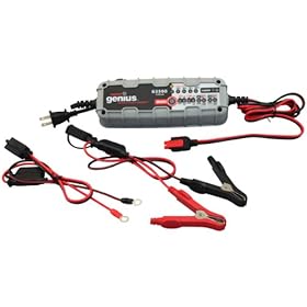 NOCO Genius G3500 6V/12V 3.5A Automatic Multi-Purpose Battery Charger and Maintainer (Grey): Automotive. It can achieve 100 percent full charge even with varying A/C input voltages, and automatically shuts off if charger remains in bulk charge mode for an extended period of time. This is a smart, 8-step, fully automatic switch-mode battery charger and maintainer. It restores batteries to their original capacity, recovers slightly sulfated batteries, charges batteries in cold climates, rescues drained batteries and provides maintenance charging to increase battery life. A versatile battery charger that provides charging modes for both large and small batteries from 1.2-120Ah, such as cars, RVs, boats and trucks, as well as for motorcycles, ATVs, jet skis or snowmobiles. NOCO's battery chargers are fortified with several unique safety features to protect you, your battery and the battery charger. The VosFX processor is a revolutionary smart processor utilizing sophisticated levels of intelligence to alter the charge process based on organic feedback from the battery to extend battery life. The processor quickly and efficiently makes decisions on how to charge the battery without risking user safety or damage to the battery. Rugged enclosure is made from a rugged polymer for high-impact resistance for some of the harshest and most demanding working environments. Features a fully insulated over-mold casing with strain relief ends to alleviate unwanted tension on cable leads. Each battery connection accessory features an over-molded inline fuse to increase user safety by protecting the battery charger from potentially dangerous short circuits. A uniquely designed interchangeable connector allows accessories to be properly mated and fastened with a snap-lock latch. It returns to last selected mode when restarted, and automatically adjusts itself to changing current needs. The box includes a charger, battery clamp connectors, eyelet terminal connectors, owner's manual and user guide, and product registration card.