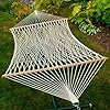 Two Person Fabric Hammock Cotton Outdoor Wood Frame: Patio, Lawn & Garden. Max. Relax together on this sturdy cotton hammock built comfortably for two. A delightful retreat! 100% cotton rope on a wood frame, metal loops for hanging. Wt.: 440 lbs.