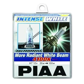 PIAA 10907 H7 Intense White 55 Watt = 100 Watt Upgrade Bulb - Pair Pack: Automotive. These bulbs provide the best possible balance between performance and bulb life. PIAA's H7 intense white bulbs produce a more radiant white beam without any hint of blue. This bulb has been completely re-engineered from the ground up. The larger glass tube with a white top coat increases output by 28 per cent and allows the bulb to burn at a much cooler temperature. Upgrade for H7 type headlight bulbs.