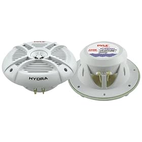 PYLE PLMRX67 250-Watt 6.5-Inch 2-Way Marine Speakers (Pair): Car Electronics. Click here for a larger image A two-way attachable grille adds another layer of protection against the elements. Pyle's Hydra series speakers are waterproof and designed for use in your boat, on the dock, by the pool, or simply mounted outside. They're designed with rust-proof mesh covers for protection from the elements. The PLMRX67s are a pair of 250-watt, 6.5-inch, two-way speakers, suitable for marine use. Pyle's Hydra series speakers are waterproof and designed for use in your boat, on the dock, by the pool, or simply mounted outside. Woofer Construction The speakers are constructed with high-quality white polypropylene cones and Santoprene rubber surrounds, boasting 250 watts peak power.