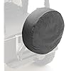 Rampage 773215 Black Denim Spare Tire Cover: Automotive. This spare tire cover protects the spare tire from getting damaged in the sun rays. Rampage Black Denim Spare Tire Cover is designed to protect the spare tire from various elements. This spare tire cover is made from durable vinyl with soft lining and is water resistant. It is custom designed to fit all spare tires. It features elastomeric edging that ensures snug fit.