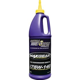 Royal Purple 01301 Max Gear 75W-140 High Performance Synthetic Automotive Gear Oil - 1 Quart: Automotive. Max-Gear is recommended for use in truck, motor home/RV and automotive front or rear differentials, manual transmissions, and lower gear units of marine engines that specify use of an API GL-5 or GL-4 fluid. Max-Gear is an ultra-tough automotive gear oil. It's designed to maximize power and provide unsurpassed protection to heavily loaded gears. It makes gears run smoother, quieter, cooler and longer without overhauls. Max-Gear outperforms other gear oils because it combines the highest quality synthetic oils with Royal Purple's proprietary Synerlec additive technology. All viscosities of Max-Gear are formulated with hypoid friction modifiers necessary for use in clutch or cone type differentials.