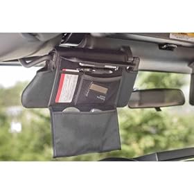 Rugged Ridge 13305.07 Sun Visor Organizer Cover for 2007-2009 Jeep Wrangler and Wrangler Unlimited JK - Pair: Automotive. The driver's side cover features a see though bottom window to expose the factory warning labels and an inside storage pocket with custom storage options; two pen/tire gauge holders, clear window registration/insurance card holder, Mesh storage pocket for commonly used items like garage door openers and a cavernous fold down storage pocket that can hold CDs and cell phones. Rugged Ridge Sun Visor Organizer Pair For 2007-09 Jeep Wrangler - Instantly turn those plastic factory sun visors on your 2007-2009 Wrangler into usable storage space while getting a clean new look with Custom Rugged Ridge(R) Visor Covers. Each pair of visor covers quickly and easily attaches to your factory sun visors without drilling or vehicle modification. - Constructed of durable interior matching textured black vinyl, these covers will provide the storage and features you want while looking great. The passenger side cover offers the same cavernous storage pocket as the driver's side (great for road maps!) but also features a vanity mirror.