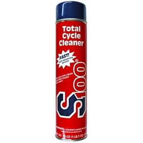 S100 Aerosol Total Motorcycle Cleaner: Automotive. All you do is simply just spray it on, hose off and watch the dirt, bugs, road tar, oil film and brake dust disappear before your eyes. America's favorite S100 Total Cycle Cleaner detergent formula is now available in aerosol form! This S100 Aerosol Total Cycle Cleaner was created to help cut down application time from minutes to seconds. Don't confuse this new aerosol with the old- fashioned engine cleaners of the past. This is the original all-around bike wash with its modern detergent technology. It's more economical, up to 20% better than conventional spray bottle. No more bucket of suds and getting down and dirty. If you haven't tried S100 Total Cycle Cleaner, join the revolution and the tens of thousands of bikers who have discovered how to cut their cleaning time and increase their riding time! Contains 21 oz.