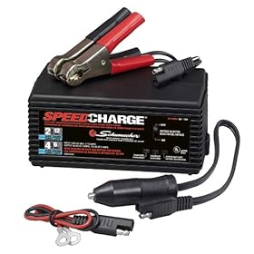 Schumacher SC-200A Speedcharge Charger/Maintainer: Automotive. It provides a 2-amp trickle for 12-volt batteries and a 4-amp trickle for 6-volt batteries. This speedcharge charger is fully automatic, compact, and has a quick harness with 3 connectors. It also feature a reverse hook up protection and does not charge the battery until it is hooked up to the correct posts.