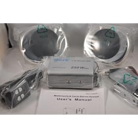 shark SHKCYCLERADIOKIT250 250 watts! Motorcycle / yacht snowmobile 2 speakers + amplifier + radio pkg: Car Electronics. Amplifier. 1 year warranty. THE HOTTEST MOTORCYCLE SYSTEM WITH FM RADIO ONLINE NOW GOT A LOT HOTTER. THIS NEW SYSTEM IS A WHOPPING 250 WATTS. THIS IS UNHEARD OF FOR MOTORCYCLE SYSTEMS UNDER 1000$. You can connect this system to any mp3 player, IPOD, cd player, etc. Available in black or chrome. The amp is 250 watts. This listing is for a brand new & factory sealed Shark Motorcycle or Yacht audio system. Available in Black OR CHROME. This Can connect to any Ipod, MP3 player or any cd receiver. Built in internal FM antenna! The radio is built into the amp. These speakers are 100% waterproof. You can dump it in a pot of water and it will still work. Try that with your current speakers. THESE ARE GREAT FOR ALL VESPAS! GET PUMPING LOUD MUSIC ON YOUR BIKE. DONT PASS THIS UP! Handle bar brackets are included. It should not take you more than 15 minutes to have this system up and running. This is a high quality Motorcycle and yacht audio systems with a built in radio. First time being sold online. 2 waterproof loudspeakers + 1 amplifier & built in FM radio with electric tuning. Also works great for moped, bikes, scooters, segways, atv's , go carts, etc etc. CAN BE USED WITH ANY MP3 PLAYER or cd player!! Suitable for 12 Volts motorcycles, scooters and yachts. Specifications of the 250 watt amplifier & radio receiver Details for loudspeaker These Water Proof LOUD Speakers now include a 250 Watt low Voltage High Power Pro. This is one of the best amplifiers out there.