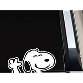 SNOOPY WAVING 6 inch White VINYL STICKER/DECAL: Automotive - TitanicImports.com