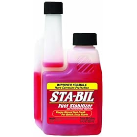 STA-BIL 22208 Fuel Stabilizer - 8 Fl oz.: Automotive. This product also protects engine from gum, varnish, rust and corrosion and prolongs the life of any engine. Gold Eagle Sta-Bil Fuel Stabilizer is a fuel additive that keeps fuel fresh for quick, easy starts after periods of storage. Designed for all 2-cycle and 4-cycle gasoline engines, Sta-Bil Fuel Stabilizer eliminates the need to drain fuel before storage in order to protect your engine from the gum, varnish, rust, and corrosion that can afflict engines after gasoline left in the tank has broken down. It also prolongs the life of an engine by removing water from gas tanks, and cleans carburetors and fuel injectors. The solution works safely and effectively in all gasoline blends, including ethanol-blended fuel up to E85. Protect Gas Engine During Storage without Draining the Tank Sta-Bil Fuel Stabilizer is America's top selling fuel stabilizer - and for good reason, it works. It's hard to believe, but fuel left in the tanks of a stored vehicle can begin to break down in as little as 30-60 days causing gum, varnish and corrosion to build up in the fuel lines and engine. One traditional solution to this problem is to drain the tank before storage, but this is time-consuming and messy. It can also be counter productive since it is very difficult to get all of the fuel out of a tank and leaving the walls of your fuel tank exposed during storage can invite corrosion in the presence of moisture, especially in fuels containing ethanol. Protection against corrosion and gumming during storage and everyday use for gasoline engines. View larger. Sta-Bil Fuel Stabilizer does away with all this by inhibiting fuel break down, allowing you to leave fuel in your stored vehicle worry-free. It also cleans carburetors and fuel injectors in the event of existing gumming up of fuel systems prolonging engine life and ensuring quick, easy starts after storage is over and the covers come off your ride. New Improved Formula Protects Against Ethanol Additives No longer just for cars being placed into storage, the new formula of Sta-Bil Fuel Stabilizer also makes it the perfect product to be used at every fill up in all vehicles and equipment to protect against corrosion caused by today's ethanol-blended fuels. Ethanol additives in modern fuels are intended to minimize carbon dioxide emissions, but they can also create problems in the form of corrosion and clogged fuel systems that can dramatically impact performance. Ethanol is optimally soluble in gasoline under the right conditions, but when temperatures become too hot or too cold the additive can become unstable, drawing moisture into your gas tank. This addition of moisture into the fuel mix can lead to phase separation, a condition in which total saturation of the fuel results in the ethanol and water separating from the gas mixture, and coming to rest near the bottom of the tank. If the level of this fuel-depleted liquid mixture is allowed to accumulate it not only will take up precious space in your fuel tank[6165] Gold Eagle STA-BIL Fuel Stabilizer keeps fuel fresh for quick easy starts after storage. It removes water to prevent corrosion and cleanses carburetors and fuel injectors. Eliminate the need to drain the fuel of your 2 or 4 cycle engine by treating the fuel with STA-BIL before storing.