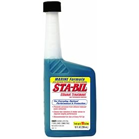 STA-BIL 22241 Marine Fuel Stabilizer - 10 oz.: Automotive. Marine STA-BIL prevents corrosion from moisture and ethanol-induced water attraction. Gold Eagle Sta-Bil Ethanol Treatment and Performance Improver - Marine Formula is a fuel additive for watercraft and other gas engines that limits the possible impact of ethanol additives in modern fuel blends. Designed to reduce the excess water and further absorption of water into your tank that ethanol can cause, the Sta-Bil Ethanol Marine Formula limits corrosion within your fuel tank and system and maintains an optimal fuel blend for maximum performance. It works in all weather conditions and under the widest of temperature swings. It is recommended for everyday use at every fill-up in marine engines for boats and other watercraft. The 10-oz bottle contains enough solution to treat up to 100 gallons of fuel. Protection for marine engines against corrosion and gumming that Ethanol fuels can cause. View larger. Protect Your Marine Engines from Ethanol Additives in Fuel Ethanol additives in modern fuels are intended to minimize carbon dioxide emissions, but they can also create problems for your boat, jetski or other watercraft in the form of corrosion and clogged fuel systems that can dramatically impact performance. Ethanol is optimally soluble in gasoline under the right conditions, but when temperatures become too hot or too cold the additive can become unstable, drawing moisture into your gas tank. This addition of moisture into the blend can lead to phase separation, a condition in which total saturation of the fuel results in the ethanol and water separating from the gas mixture, and coming to rest near the bottom of the tank. If the level of this fuel-depleted liquid mixture is allowed to accumulate it not only will take up precious space in your fuel tank, but it may also be injected into your engine affecting performance and potentially creating serious problems. In addition, if significant water remains in your tank the moisture can cause rust and corrosion, or contribute to the gumming up of your fuel system. This is where Sta-Bil Ethanol Treatment and Performance Improver - Marine Formula comes in. Sta-Bil's Ethanol Treatment and Performance Improver - Marine Formula helps remove water from fuel in engines, prevents corrosion from ethanol blended fuels and cleans fuel injectors, carburetors and intake valves for overall performance. The result is a marine engine that runs smoothly regardless of temperature conditions. This industry leading marine fuel additive provides more than four times the fuel system cleaner [6314] Gold Eagle Marine STA-BIL Fuel Stabilizer is the best ethanol problem fighter. This is more than four times the fuel system cleaner than the regular STA-BIL and double the corrosion fighter. If you are using ethanol blended fuel in your marine application, Gold Eagle recommends Marine STA-BIL with EVERY fill up, not just for storage.