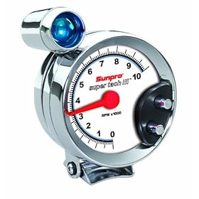 Sunpro CP7914 Super Tach III 5 inch Chrome Bezel/White Face Tachometer with Shift Light: Automotive. For nearly 60 years, Sunpro has been the performance legend, delivering great looks, innovative features and reliable performance for people who love their cars. Sunpro Super Tach III is wrapped in a solid metal casing with a reflective chrome finish, accent louvers, two-tone graphics in a dynamic blue shift light, this performance tach is the perfect addition to your dashboard. Pair it with Sunpro's new full line of complementary chrome super III gauges to complete the look. Easy-to-read backlit graphics, thin profiles, and attractive extras like chrome accents make Sunpro tachs and gauges a perfect fit for all kinds of vehicles, from muscle cars to sports cars, imports and trucks.