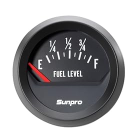 Sunpro CP8219 StyleLine Electrical Fuel Level Gauge - Black Dial: Automotive. It comes with a 2-in black face dial with white numbers and a red pointer that adds style and readability to its look. This electrical fuel level gauge gives high performance with a great racing look. It has 12-volt internal lighting and is designed for negative ground systems.