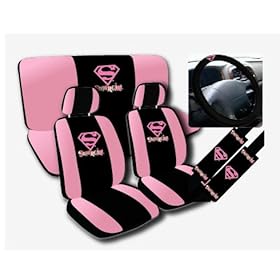 11pc Supergirl Super Girl Pink Logo Low Back Seat Covers with Head Rest Covers, Bench Cover and Steering Wheel Cover with Shoulder Pads Licensed and Rare Product: Automotive. OFFICIAL LICENSED HARD TO FIND PRODUCT.