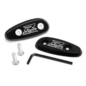 Suzuki GSXR 600 750 1000 Mirror Block Off Plates Logo Engraved Black Set 2000 2001 2002 2003 2004 2005: Automotive - TitanicImports.com