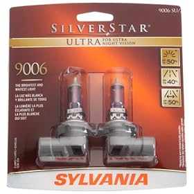 Sylvania 9006SU/BP SilverStar ULTRA High Performance Headlight Bulbs (Low-Beam), Pack of 2: Automotive. This operates with internal gas pressure which significantly reduces the rate of tungsten evaporation. Sylvania's SilverStar Ultra product line of halogen headlight bulbs are the ultimate choice for professionals and do-it-yourselfers who want and/or need to provide the whitest and brightest automotive lighting option possible to vehicles that they are servicing. The SilverStar Ultra 9006SU BP twin-pack contains two high performance halogen headlight bulbs which feature dramatic improvements over standard halogen bulbs, including up to 50% brighter light, 40% increased down-road visibility and up to 50% increased side-road visibility. .caption { font-family: Verdana, Helvetica neue, Arial, serif; font-size: 10px; font-weight: bold; font-style: italic; } ul.indent { list-style: inside disc; text-indent: -15px; } table.callout { font-family: verdana; font-size: 11px; line-height: 1. 3em; } td.vgoverview { height: 125px; background: #9DC4D8 url(http://images.amazon.com/images/G/01/electronics/detail-page/callout-bg.png) repeat-x; border-left: 1px solid #999999; border-right: 1px solid #999999; padding-left: 20px; padding-right: 20px; padding-bottom: 10px; width: 250px; font-family: verdana; font-size: 12px; } The whitest, brightest headlight available. View larger. See farther, wider and more clearly. View larger. Why You Should Upgrade to SilverStar Ultra It is an accepted fact that headlights can dim over time by 20% or more. When this dimming occurs, timely replacement of halogen bulbs can instantly increase lighting performance and resulting visibility, but all halogen bulbs are not created equal. The more light you can spread on the road, the better the visibility. With [6901] Sylvania SilverStar Ultra High Performance Halogen Headlight is fashioned for brighter and whiter light. It has dual filament for both high beam and low beam. Its analogous non-halogen incandescent lamp operates the same filament temperature with greater luminance and efficiency.