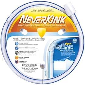 Teknor Apex 8602-25 Neverkink 5/8 inch X 25 inch RV and Marine Hose: Automotive. Kinks, twists and tangles don't even have a chance to develop. No kink, no twist, no tangle. Guaranteed! This is the straight truth! Revolutionary Reflex Mesh actually causes loops in the hose to self straighten. Details: Replaces your current 5/8 inch water hose; Suitable for marine and RV applications; Durable construction available in various lengths.; Play it straight! State Size.