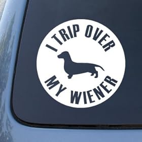 TRIP OVER MY WIENER - Dog Dachshund - Vinyl Decal Sticker #1566 / Vinyl Color: White: Automotive. This is a high quality vinyl decal that can be applied on your car, notebook, computer or just about any smooth surface.