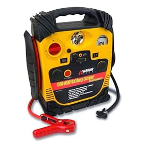 Wagan EL2544 500 Amp Jumpstarter with Built-In Air Compressor: Automotive. The two DC portable power outlets have overload protection for 12 volt appliances, a 110 volt recharger for home use and a quick and easy recharging time of 34 hours for AC, 14 hours for DC. Wagan 500 Amp Jumpstarter with Built-In Air Compressor is a powerful portable power supply that jumpstarts your car, inflates your tires and more. This 500 cranking amp jumpstarter has a powerful rechargeable 14 Ah sealed lead battery, heavy duty booster clamps and extra long six gauge booster cables. The 260 PSI air compressor has a quick flow that inflates 16 inch tires in only 5-10 minutes and comes with a high pressure air hose. The one USB power port will power and recharge most USB devices such as MP3 players, cell phones and more.