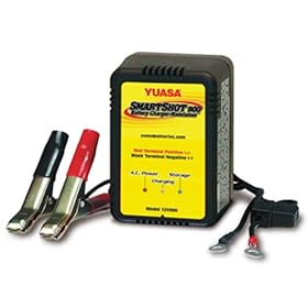 Yuasa YUA1200901 Smartshot 12V 900 mA Battery Charger/Maintainer: Automotive. Designed to prevent overcharging. Yuasa Smart Shot 900 Automatic 12V 900mA Battery Charger is developed combining the latest technology and a host of user friendly features. This compact, high power unit provides optimum amperage return and is designed to fully charge and maintain conventional and sealed maintenance free batteries. Fully automatic three level charge cycle for effective charging. Reaches 14.4 volts peak, then automatically switches to float. AC power LED indicator.